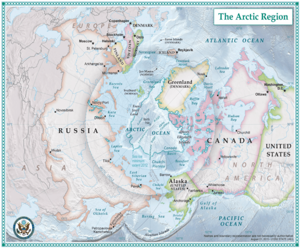 This map of the Arctic was created by U.S. State Department geographers as part of the U.S. Chairmanship of the Arctic Council.
