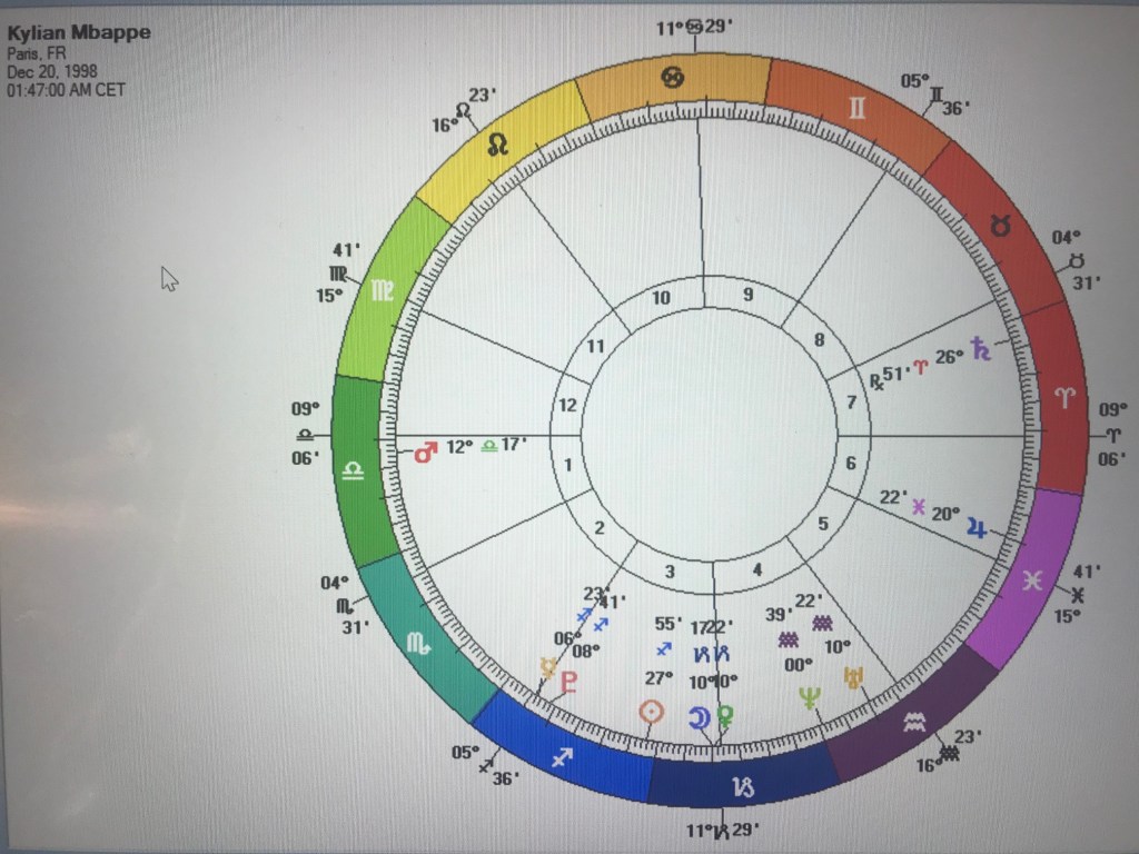 When I glanced at Kylian’s chart ♆Neptune in the 4th House was the first planet I noticed. In very simple terms the 4th House is about the home and all things related. This is probably the best position for ♆Neptune that creates a deep mystical environment but can result in parasitic hangers-on. ♅Uranus is not such an easy 4th House placement tending to cause instability. It is said that travel to exotic places is a safety valve. Lucky Kylian can afford it. Again, hangers-on are a typical feature. Dips in Kylian’s form can likely be traced to what are known as negative transits affecting ♅Uranus, these are temporary.